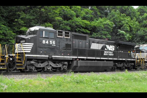 CR GP40 3120 and SD45 6219 take up the rear of a trio of units pulling a TV train up Horseshoe in March, 1978.