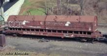 Conrail coil car Class GE52C CR 622182 April 1996 ORER description: Gondola, cushion underframe, skids and covers, coil steel, axle spacing 5' 10", truck centers 41' 3", AAR car type code E641, mechanical designation GBSR.