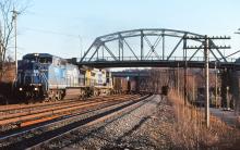 CR 6223 & CSXT 7846 are seen on a WB on the Youngstown Line at Rochester PA on 2/7/98.