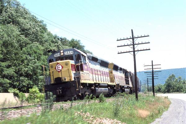 SD's pulling piggybacks through Altoona in August, 1977.