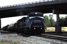 CR 6229 and a SD40-2 power COBU-9 as it crosses the diamond of the Indianapolis line with the ex PRR Ft. Wayne line at Crest Tower in Crestline, OH on May 29, 1999. Chris Howe photo