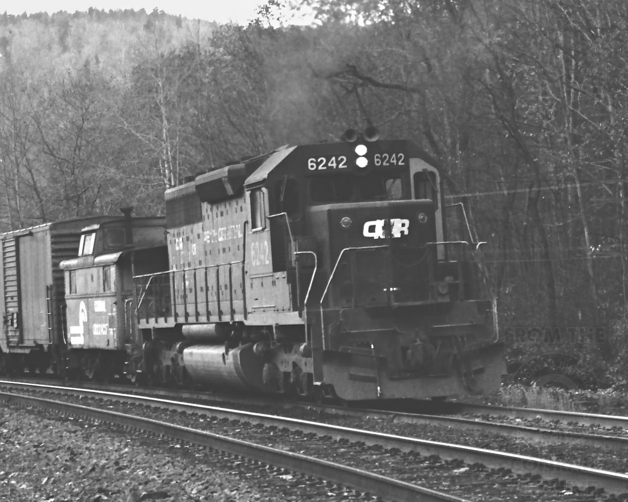 SD40 6242 pushing the extra 8151 west in Middlefield, MA.