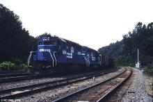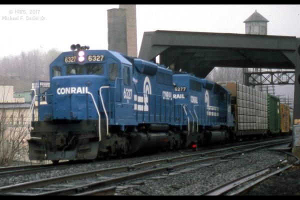 SD40 6244 and another SD40 bring an eastbound manifest into the receiving yard at Allentown.