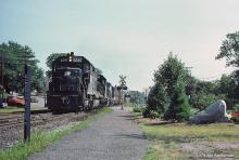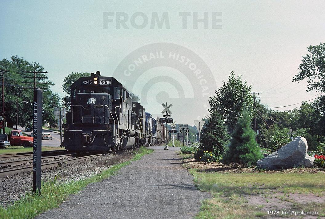 A westbound manifest freight with ex-PC 6245 SD40 leading is about to enter Allegheny Division Zone B of the Buffalo Line.