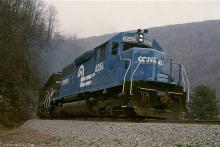 You can feel the ground shake as CR SD40 6256 and an SD45 pound up Horseshoe in March, 1978.