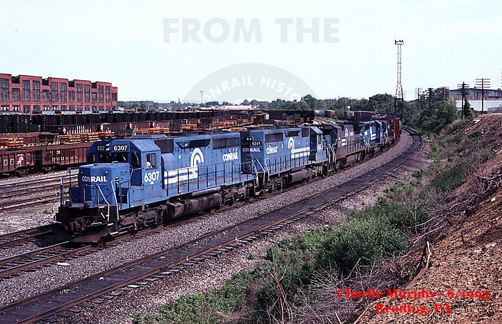 Previous Next Photo By Charlie Murphy 6307 leads an ALEN extra into Reading, PA in June 1993. Year 1969 Original Date 12/31/69 Location Reading PA Equipment Type EMD SD40 Conrail Number 6307 Additional Galleries Charlie Murphy's Conrail Memories Line or Locale Conrail Around Reading Collection CRHS Conrail Photo Archive Contributions