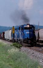 Not strictly the Southern Tier, but close enough. CGAL smokes up as it gets underway at the block limit sign in Athens PA, on the former Lehigh Valley.