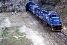 CR 6358 EMD SD40-2 Pittsburgh Line Gallitzen PA with train MAIL3 exitting Allegheny Tunnel