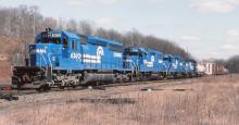 CR 6360, 7798, 7932, and 3206 are on an eastbound at Belmont Jct. in Phila. PA on 3/3/84.