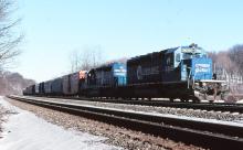 CR 6365 & 6389 are seen shoving a EB at Summerhill PA on 2/8/98.