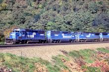 Previous Next Photo By Rich Bowes CR 6367 EMD SD40-2 Pittsburgh Line Logan Twp PA Horseshoe Curve with train ENPI7 Year 1992 Original Date 10/7/92 Location Logan Twp PA Conrail Number 6367 Additional Galleries Rich Bowes' Conrail Photographs Line or Locale Conrail's Pittsburgh Line East Slope West Slope and Horseshoe Curve Operations Pittsburgh Line Collection CRHS Conrail Photo Archive Contributions