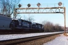 CR 6387 & 6383 are seen shoving a EB at Wilmore PA on 2/8/98.