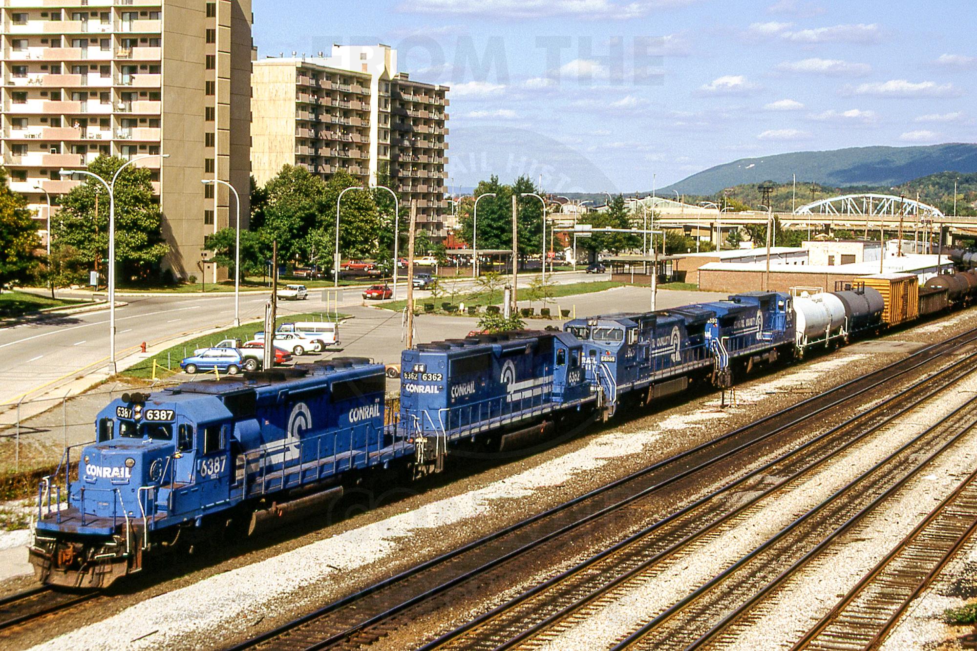 Previous Next Photo By Rich Bowes CR 6387 EMD SD40-2 Pittsburgh Line Altoona PA with train CAPI3 Year 1993 Original Date 9/3/93 Location Altoona PA Equipment Type EMD SD40-2 Conrail Number 6387 Additional Galleries Rich Bowes' Conrail Photographs Line or Locale Conrail's Pittsburgh Line East Slope West Slope and Horseshoe Curve Operations Collection CRHS Conrail Photo Archive Contributions