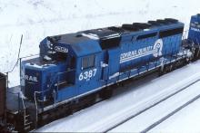 CR 6387 is seen on the rear of XSG-400 at Gallitzin, PA on 3/5/99.