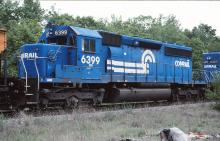 Previous Next Photo By Jeff Weaver CR 6399 is seen at Tyrone, PA on 6/7/97. Year 1997 Original Date 6/7/97 Location Tyrone PA Equipment Type EMD SD40-2 Conrail Number 6399 Collection CRHS Conrail Photo Archive Contributions