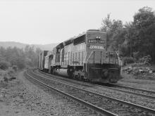 The 6409 aiding westbound tonnage through Bancroft, MA. in June, 1979.