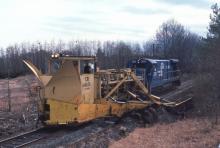 After making the ditching pass, the 64611 and 2001 back up and then make a spreading pass to level off the dirt berm pushed up by the ditching pass.