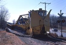 Folding up the wings on the 64611 preparatory to crossing Tolland Turnpike at Risley's.