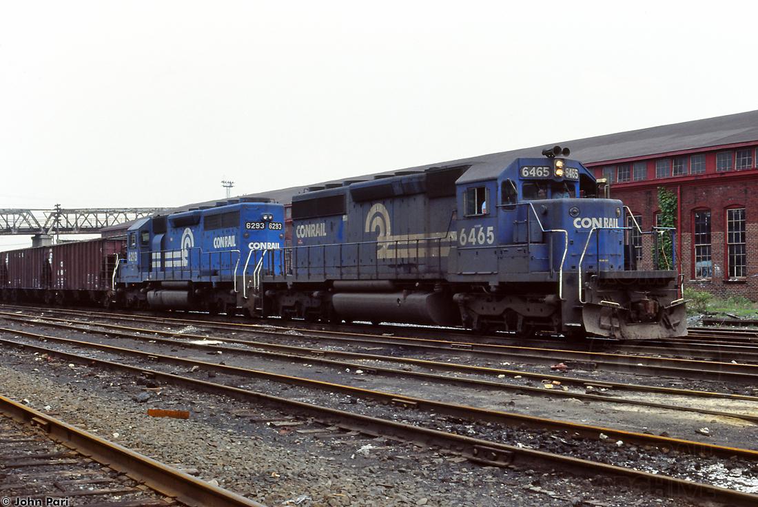 CR 6465 is seen with CR 6293 on a hopper train at Rutherford, PA on 6/18/1983.
