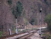Previous Next Photo By Carl Weber All's quiet at the staggered pair of semaphores at Brown's Crossing, NY. on May 6, 1993, but not for long. Year 1993 Original Date 5/6/93 Conrail Number 6468 Additional Galleries Carl Weber's ConRail Action Sequence Photography Line or Locale Conrail's Southern Tier Line Collection CRHS Conrail Photo Archive Contributions