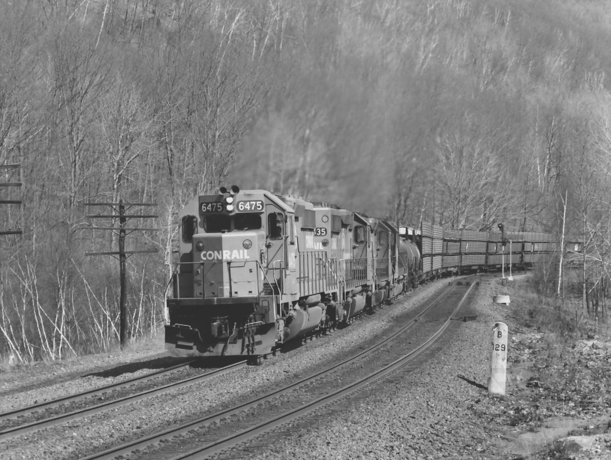 CR 6475 leading BOEL past MP 129 in Becket, MA. on April 27, 1983.