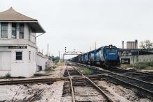 A Conrail freight with CR 6478 on the point heads eastbound on the IHB and is about to cross the L&N (former Monon) at Hohman Avenue Tower, Hammond, IN in October 1981. Doug Davidson photo with permission