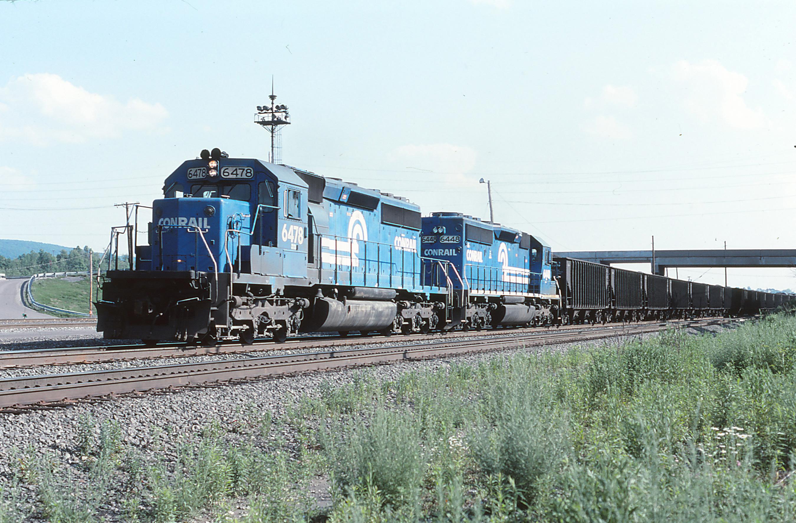 CR 6478 & 6448 are seen leading UXC-392 east at HOMER in Altoona, PA on 6/15/96.