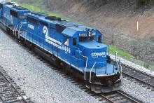 CR 6496 was on the point of eastbound coal loads at Cumberland, MD on 6/3/95.