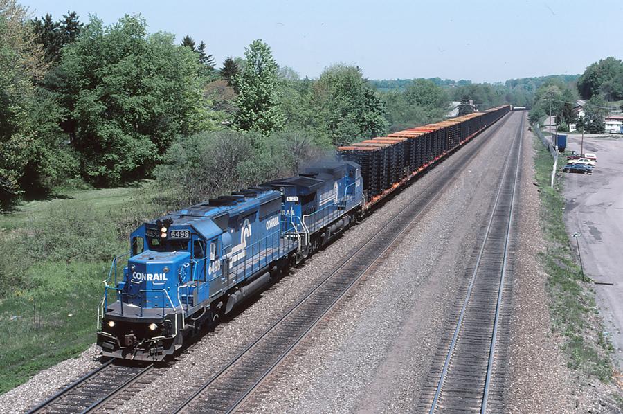 CR 6498 & 6125 are seen leading ALPI-4F west at Lilly, PA on 5/15/98.