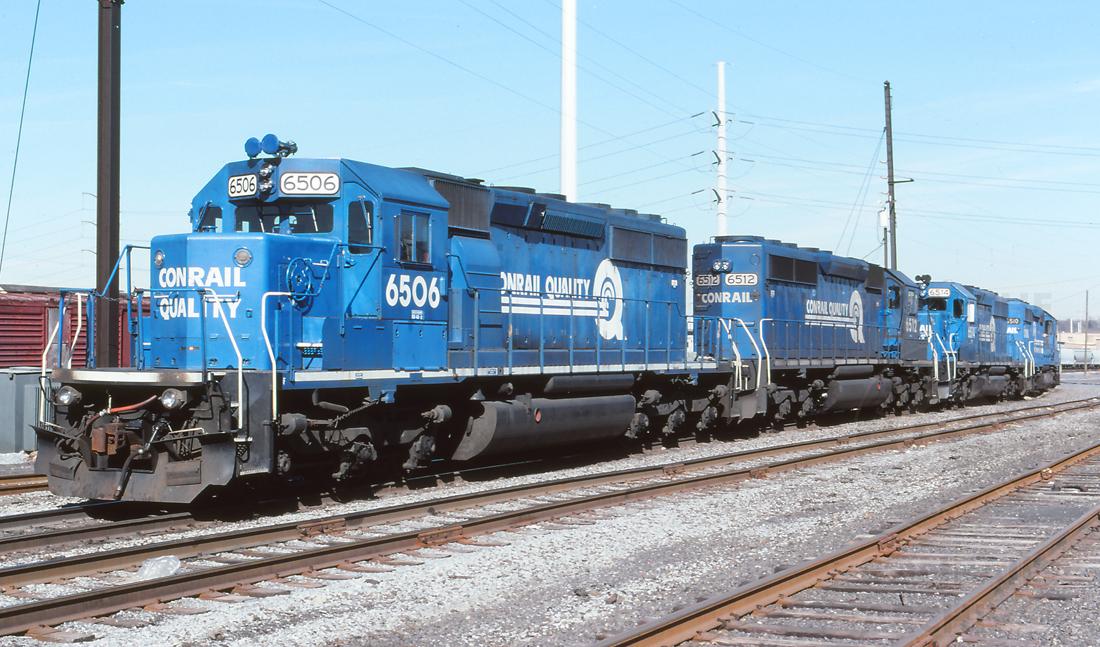 Four SD40-2's, CR 6506, 6512, 6514, and 6510 are at Edgemoor, DE on 2/1/98.