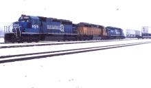 An unnamed TV train's power backs down through Dewitt for a pick up on a typically snowy Syracuse day. Second unit is UP 3572.