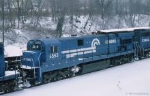 CR 6552 C30-7A in the power consist of an inbound train at Overview.