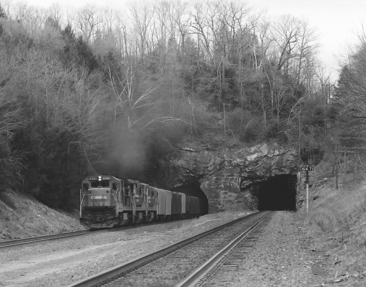 SEPW emerges from the east portal of tunnel 2 behind the 6561, et.al. on April 23, 1988.