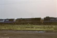 CR U33C 6564 (ex-EL 3301) runs second in a quartet of U-boats as they roll past Amtrak E-units. CR U30C 6579(ex-RDG 6300) and U23B 2701(ex-PC) follow at Harrisburg in August, 1979.