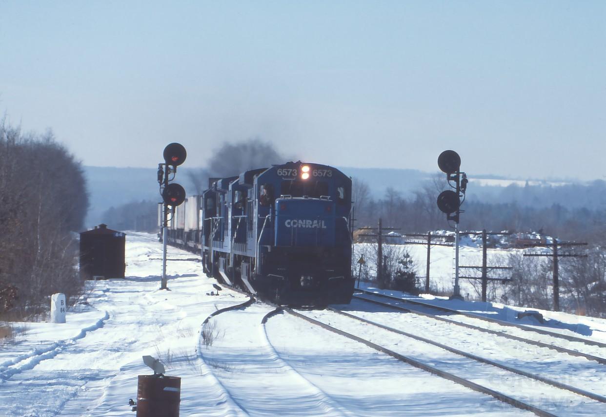TV6 snaking into the controlled passing siding at CP 64 in East Brookfield, MA.