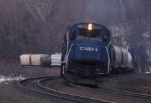 The 6573 leads FRSE into Hinsdale from Washington, MA. at the north end of Muddy Pond on April 9, 1993.