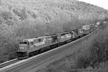 This double-stacker eastbound at Middlefield, MA at 0645 hrs, 22 May 1992.