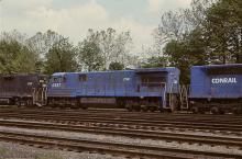 CR U36C 6587, ex-EL 3316, in the middle of a trio of units near Bethlehem in June, 1978.