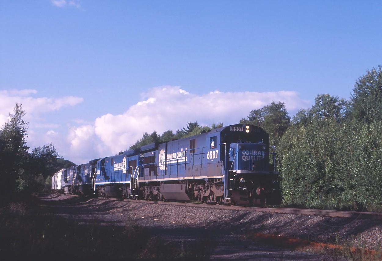 Not as common as they once were on the B&A, but still putting appearances from time to time, a quartet of C30-7A's with the 6587 in the lead have SENE at Washington depot on Aug. 30, 1997.