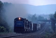 CR 6589 leads SEMB up the "ramp" out of North Adams Jct. in Pittsfield, MA. on June 1, 1987. Ahead are 5 1/2 miles of steady 1.4% grade to Hinsdale center at MP 142.