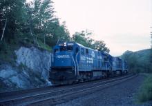 CR 6600 leads SENH at MP 167 in Canaan, NY. on June 10, 1988. This location is the site of the former Canaan station at Columbia county Rt. 5 crossing.