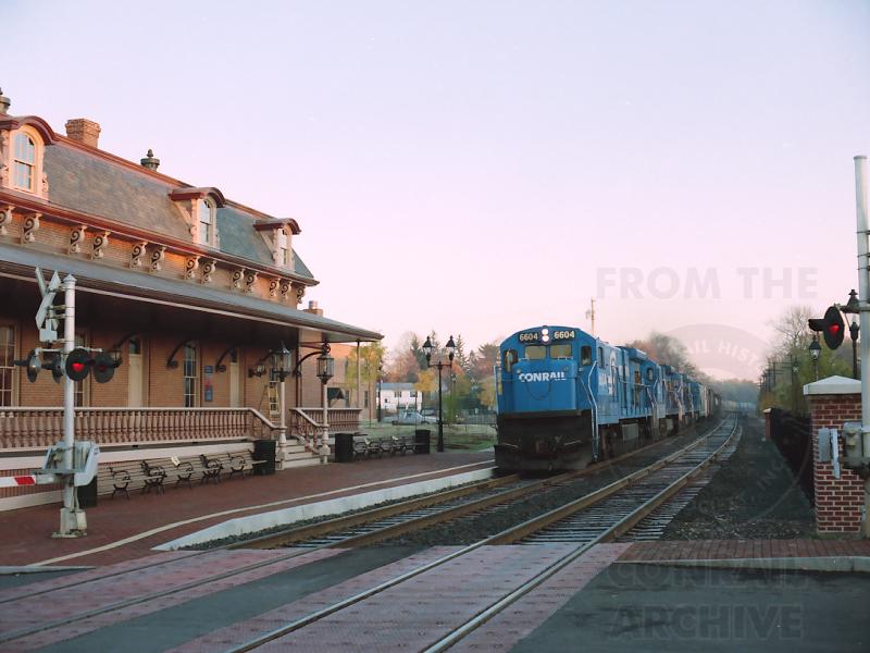 C30-7 6604 breezes past the recently rebuilt station in Windsor, CT. with SENH at 07:39 on Oct. 29, 1988. Later on in the day a celebration for the re-opening of the station was held, complete with speeches by local dignataries, a banner-breaking by one of the Amtrak shuttle trains, you know, the whole schmear. C30-7's were regularly assigned to the SENH/NHSE turns at this point in time.