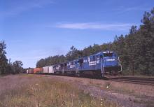 C30-7 6607 has the point on SEPW passing the summit in Hinsdale, MA. on Aug. 26, 1989.
