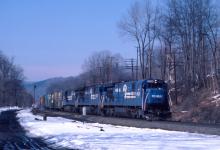 C36-7 6620 brings SEMB-X into Chester, MA. past MP 126 on March 7, 1987.
