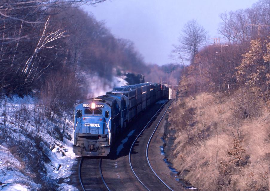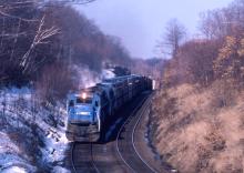 SEFR, led by the 6622, draped across the summit of Charlton hill in Charlton, MA. on March 15, 1987.