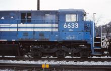 A close up view of the BN battery box cover on CR 6633 at Cumberland MD on 3/5/98.