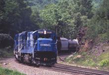SEFR rolls into Bancroft, MA. behind C36-7 6636 on June 12, 1993.