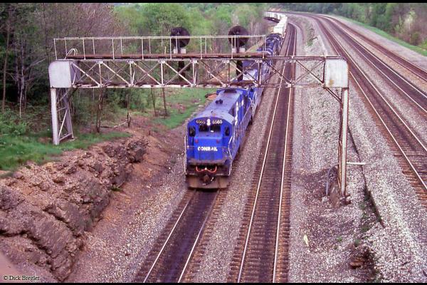 Previous Next Photo By Lee Weldon Conrail SD45-2 6654 (ex-EL 3669) is seen at the helper facility at Cresson, PA in the early 80s. Year 1980 Location Cresson PA Equipment Type EMD SD45-2 Conrail Number 6654 Additional Galleries Other Scenic and Action Photos Collection CRHS Conrail Photo Archive Contributions