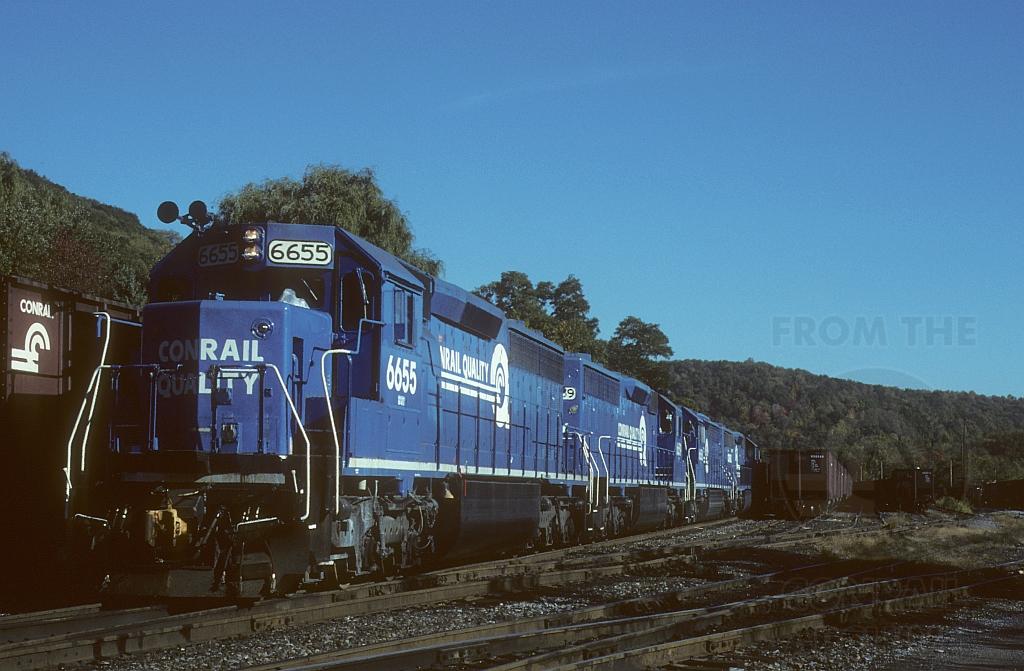 Four of the ex EL SD45-2's take a break in South Fork yard in October 1996. This unit survives today as NS 1701.