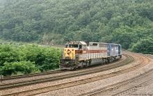 CR 6660, ex-EL 3675 and SDP-45 6691, ex-EL 3660, run light down the hill to begin their next pushing operation.